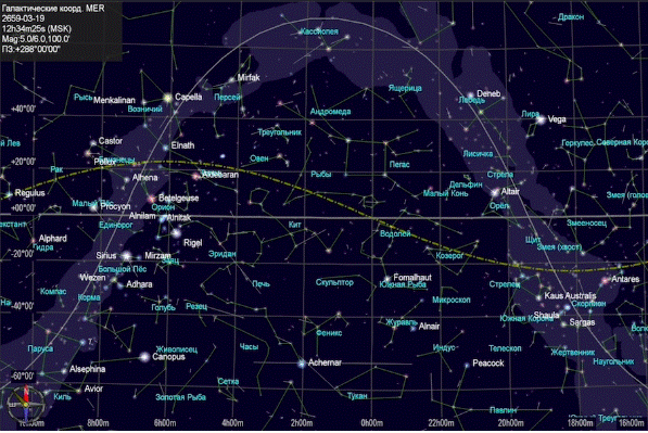 There we approached a computer displaying a map of the starry sky. The astronomer showed me the position of the vernal equinox point on the celestial sphere and its movement over thousands of years.