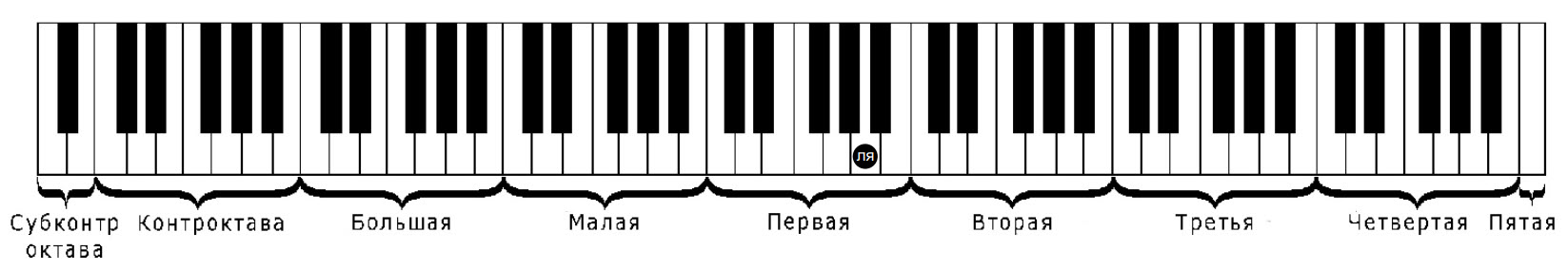 Fig. 1. Piano keyboard by octaves (the note “A” – A4, from which any instrument is tuned, is marked with a circle)